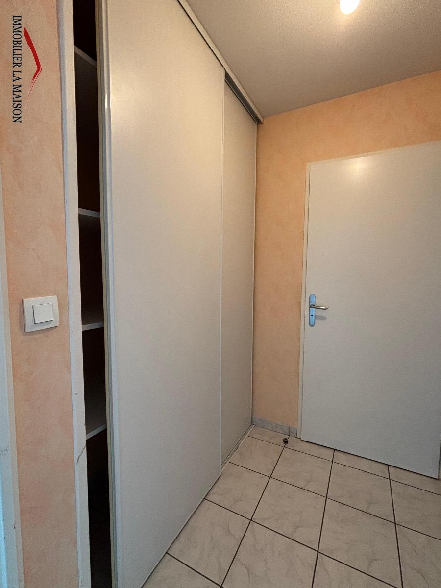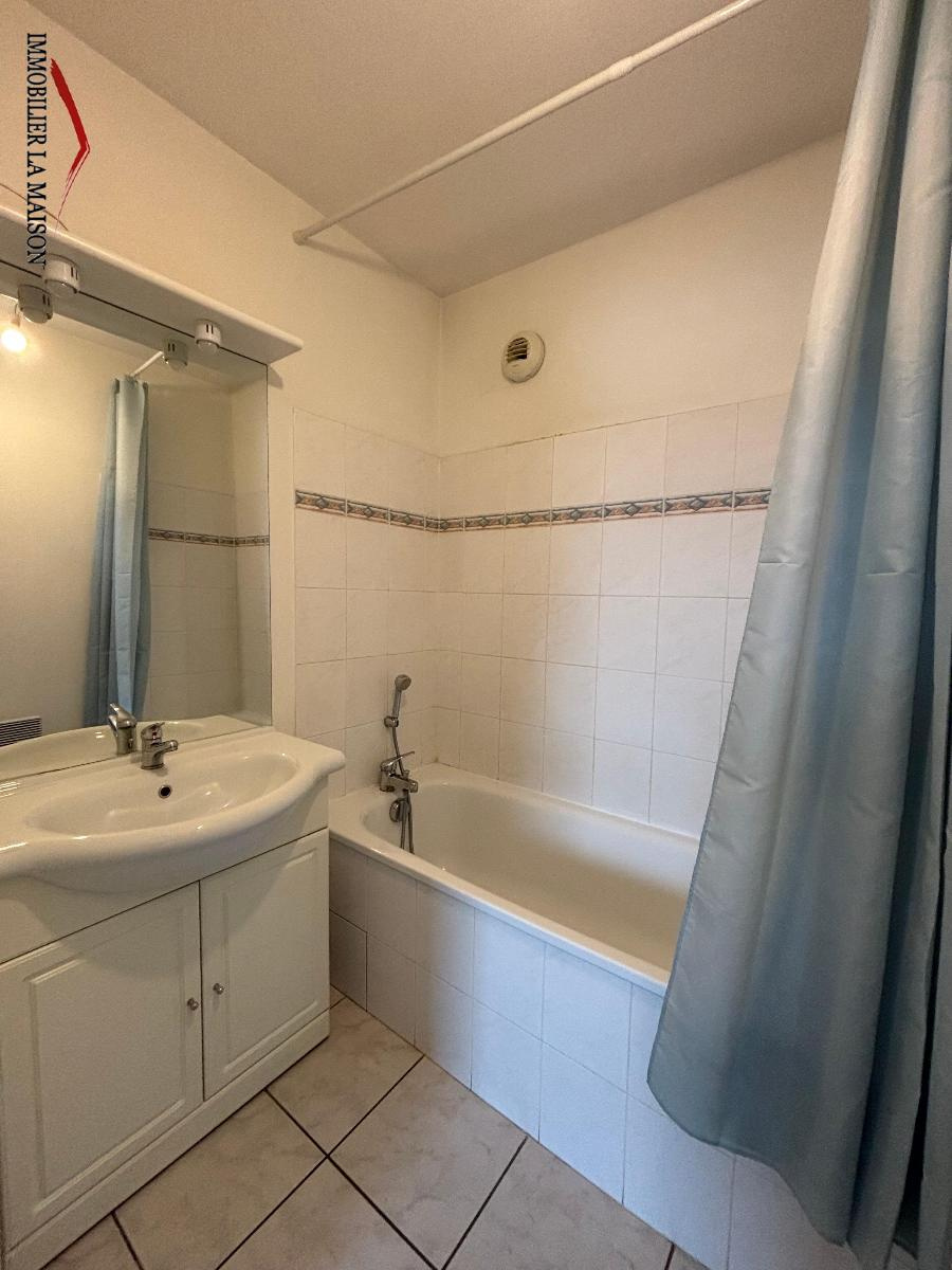 Appartement T2 dans résidence sécurisée comprenant une entrée avec un placard, le coin cuisine (équipée d'une plaque 2 feux, d'un réfrigérateur top et de placards haut et bas) est ouvert sur le salon, chambre avec rangements et salle de bains. Wc séparé. Les plus, une cave et une place de parking sécurisée. Loyer de 485,00 euros par mois charges comprises dont 45,00 euros par mois de provision pour charges (soumis à la régularisation annuelle). Montant estimé des dépenses annuelles d'énergie pour un usage standard : entre 910 et 1 230 euros. Prix moyens des énergies indexés en 2022.